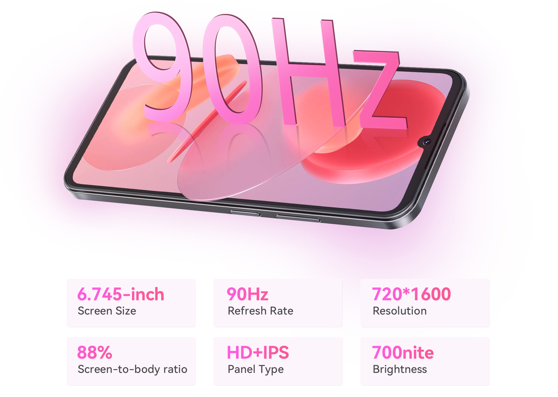 Step into a world of vibrant visuals with the 6.745-inch HD+ display. The 90Hz refresh rate ensures smooth scrolling, fluid gaming, and crystal-clear video. Whether you're binge-watching your favorite show or diving into mobile games, the screen keeps every detail sharp and stunning.