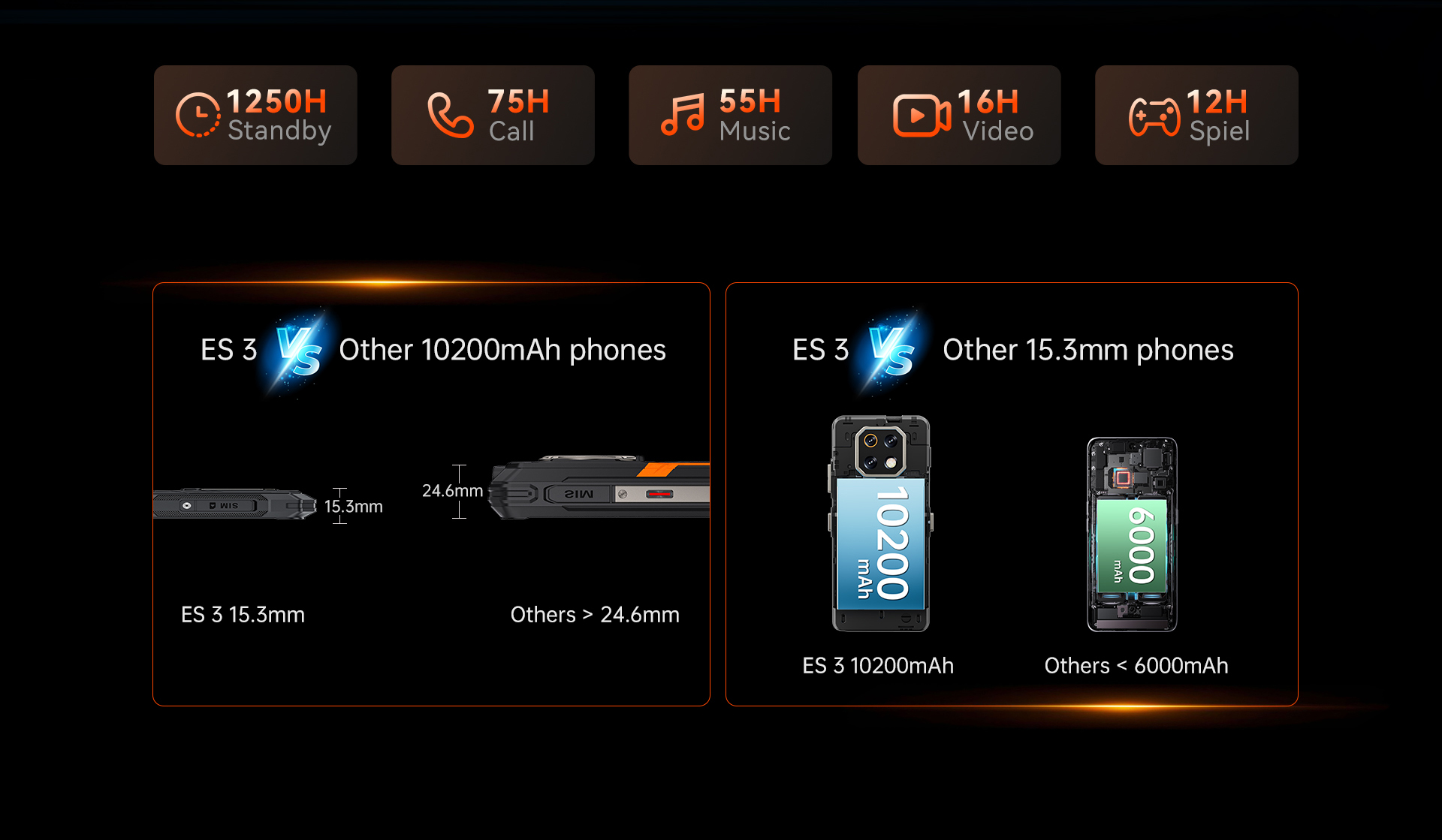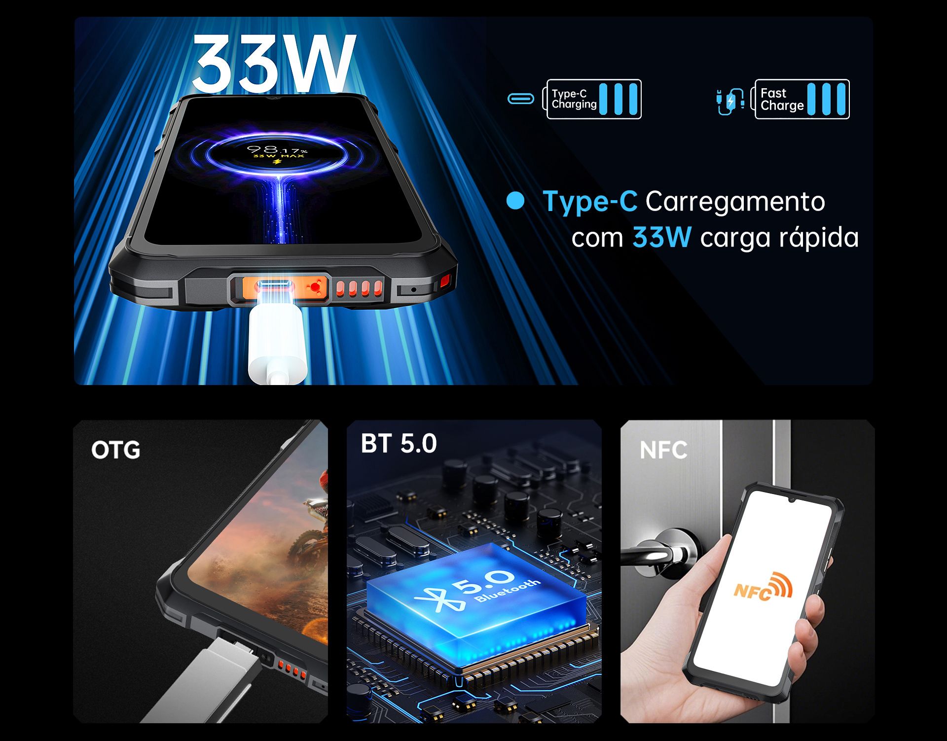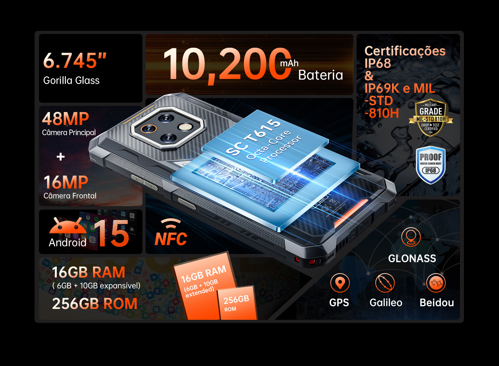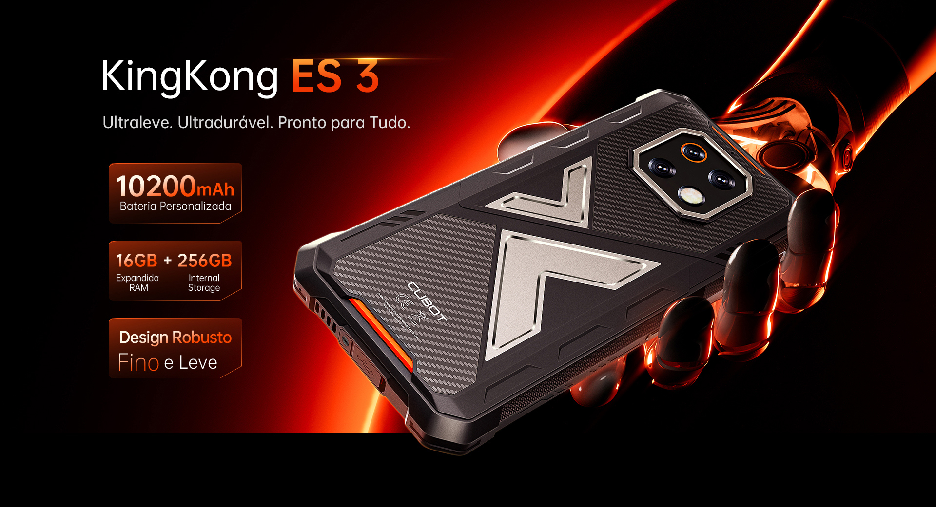 Com uma bateria massiva de 10.200mAh, este celular robusto mantém você com carga por dias. Qual o segredo? Uma célula de bateria projetada sob medida que economiza espaço interno e reduz o peso — garantindo potência máxima sem o volume extra.