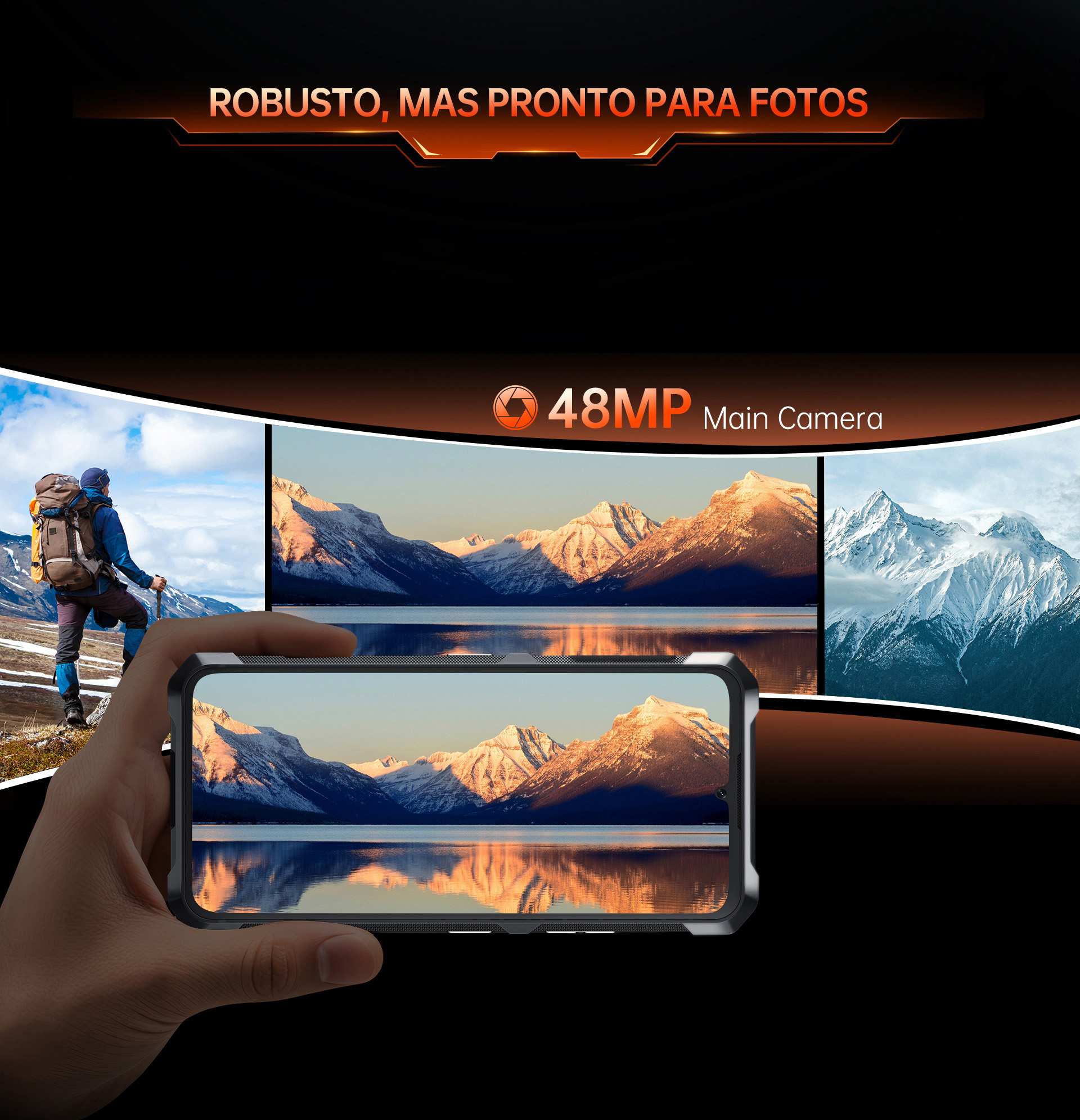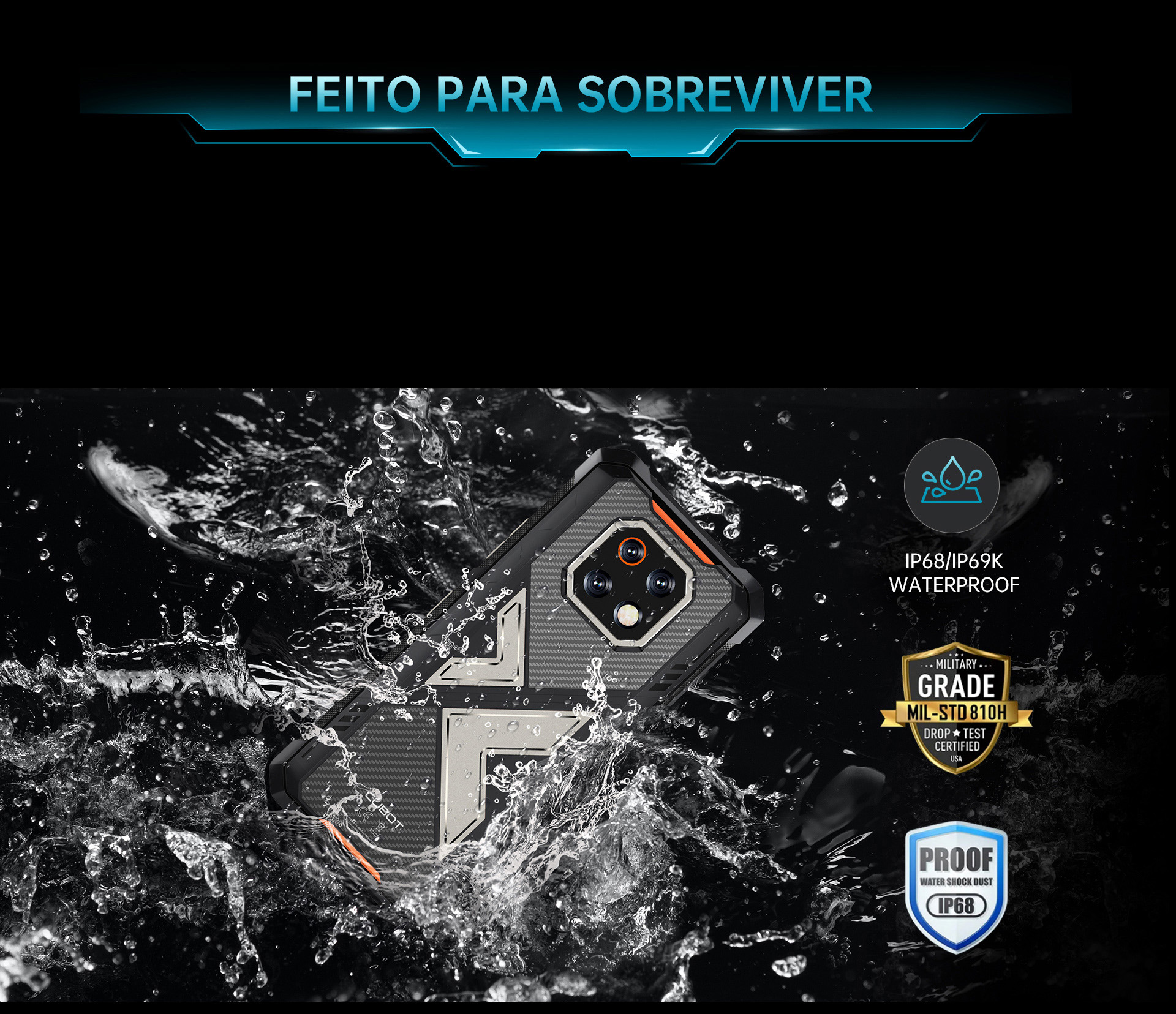 Certificado com IP68/IP69K e MIL-STD-810H, resiste à água, poeira e choques. De trilhas tempestuosas a obras difíceis, é o seu companheiro destemido do dia a dia.