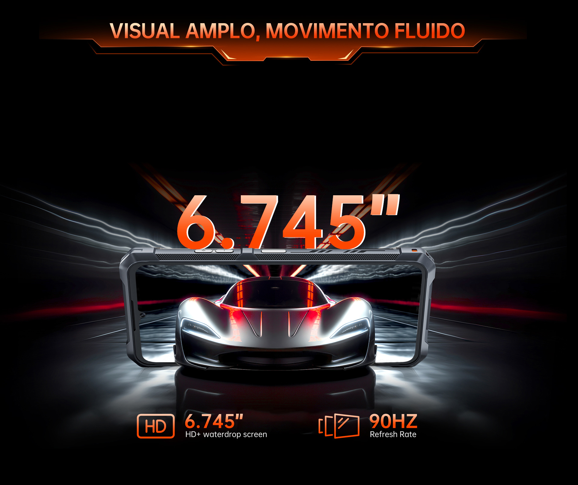 A tela HD+ de 6,745'' com notch em gota e taxa de atualização de 120Hz proporciona uma experiência imersiva, com rolagem fluida e ótima nitidez — em qualquer ambiente.