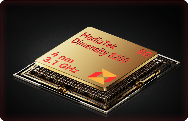 8200 5G processor. The 4nm architecture and 3.1GHz clock speed ensure