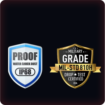 IP68/IP69K and MIL-STD-810H certifications ensure that protection