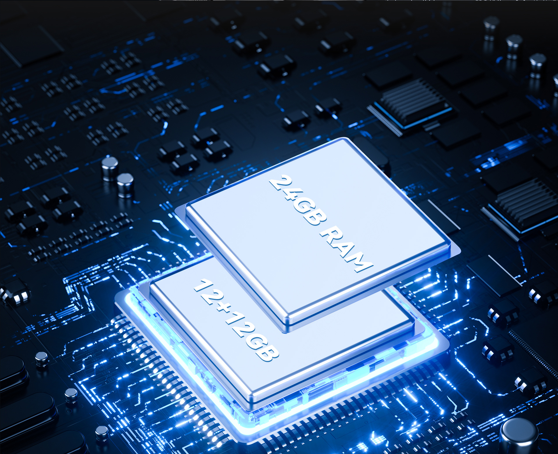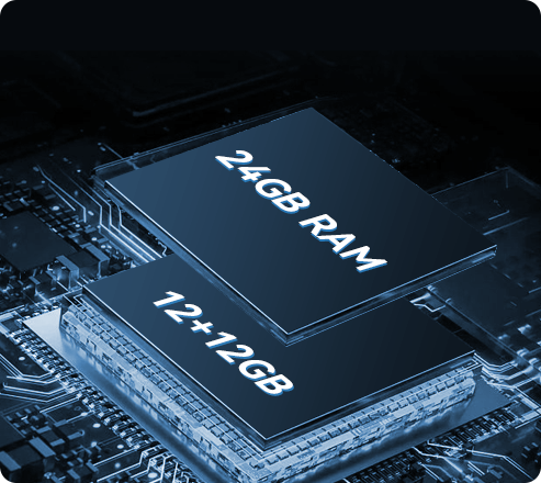 mind-blowing 24GB RAM (12GB+12GB Extended RAM). Seamlessly