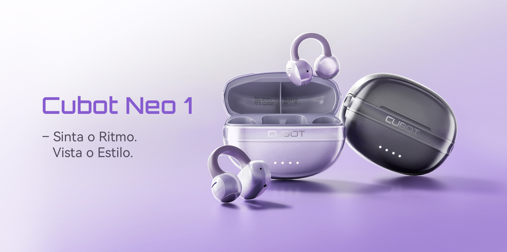 Mais do que tecnologia — é atitude. O Neo 1 não é só um fone de ouvido. É um acessório com estilo próprio. Seja no preto clássico ou no roxo ousado, ele combina com o seu visual. Pense em música com cara de joia moderna.
