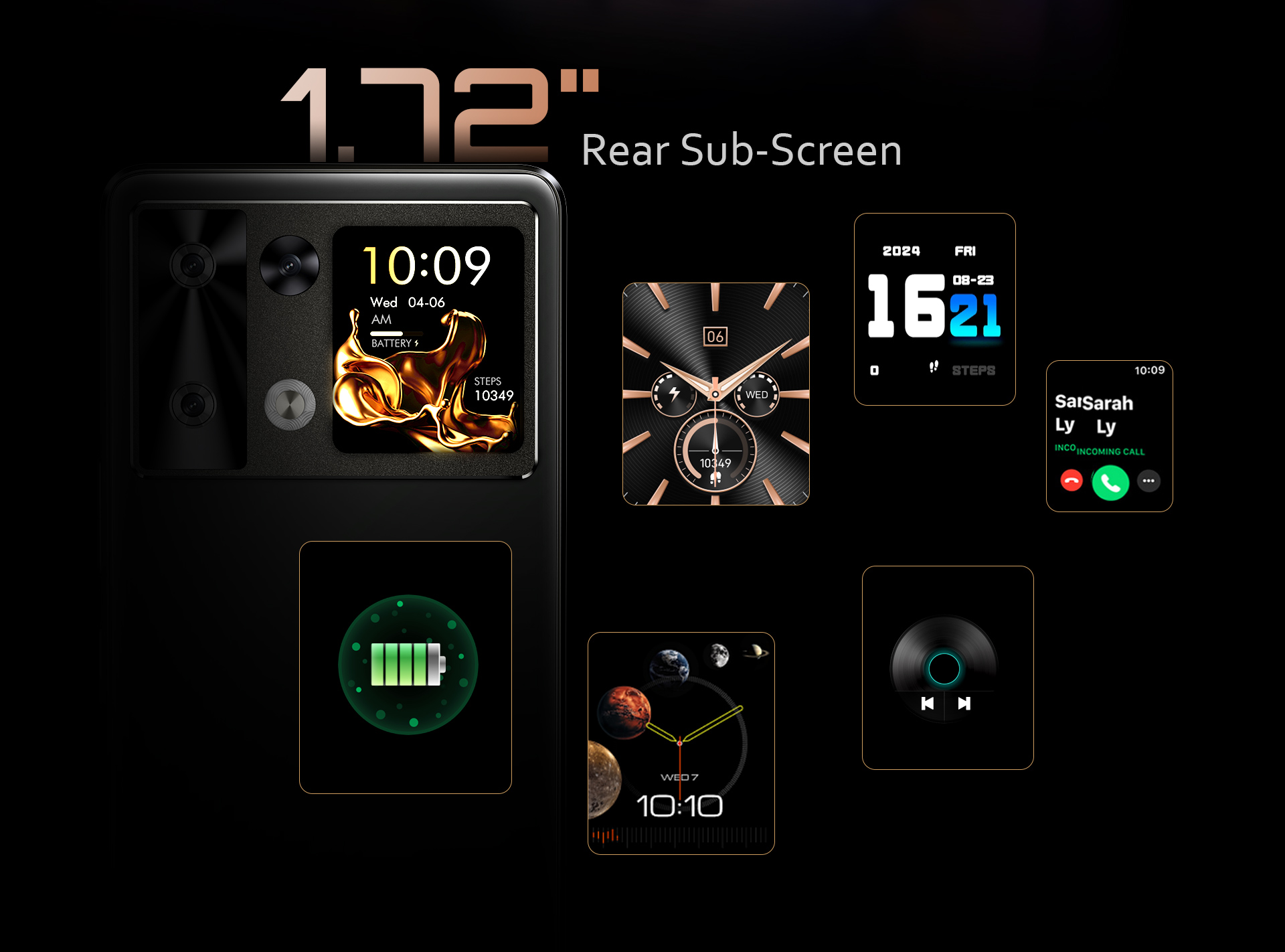 Por que se contentar com uma se você pode ter duas? A tela HD+ de 6,88" com notch gota e taxa de atualização ultra fluida de 120Hz proporciona uma experiência visual envolvente, enquanto a tela traseira de 1,72" permite visualizar notificações, controlar músicas e tirar selfies rápidas—sem desbloquear o celular. Multitarefa de um jeito mais inteligente!