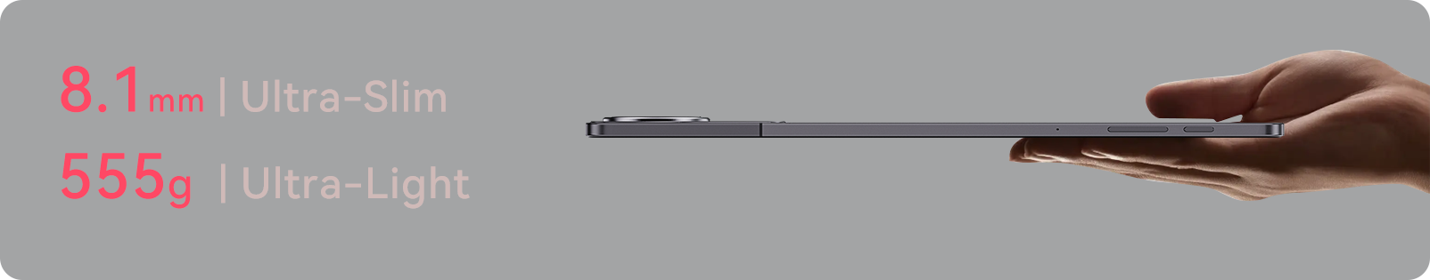 At just 8.1mm thick and weighing only 555g, this tablet is the perfect blend of style and portability. Its sleek, slim profile makes it easy to carry, while its lightweight design ensures comfort, no matter where your day takes you. Ready to go whenever you are.